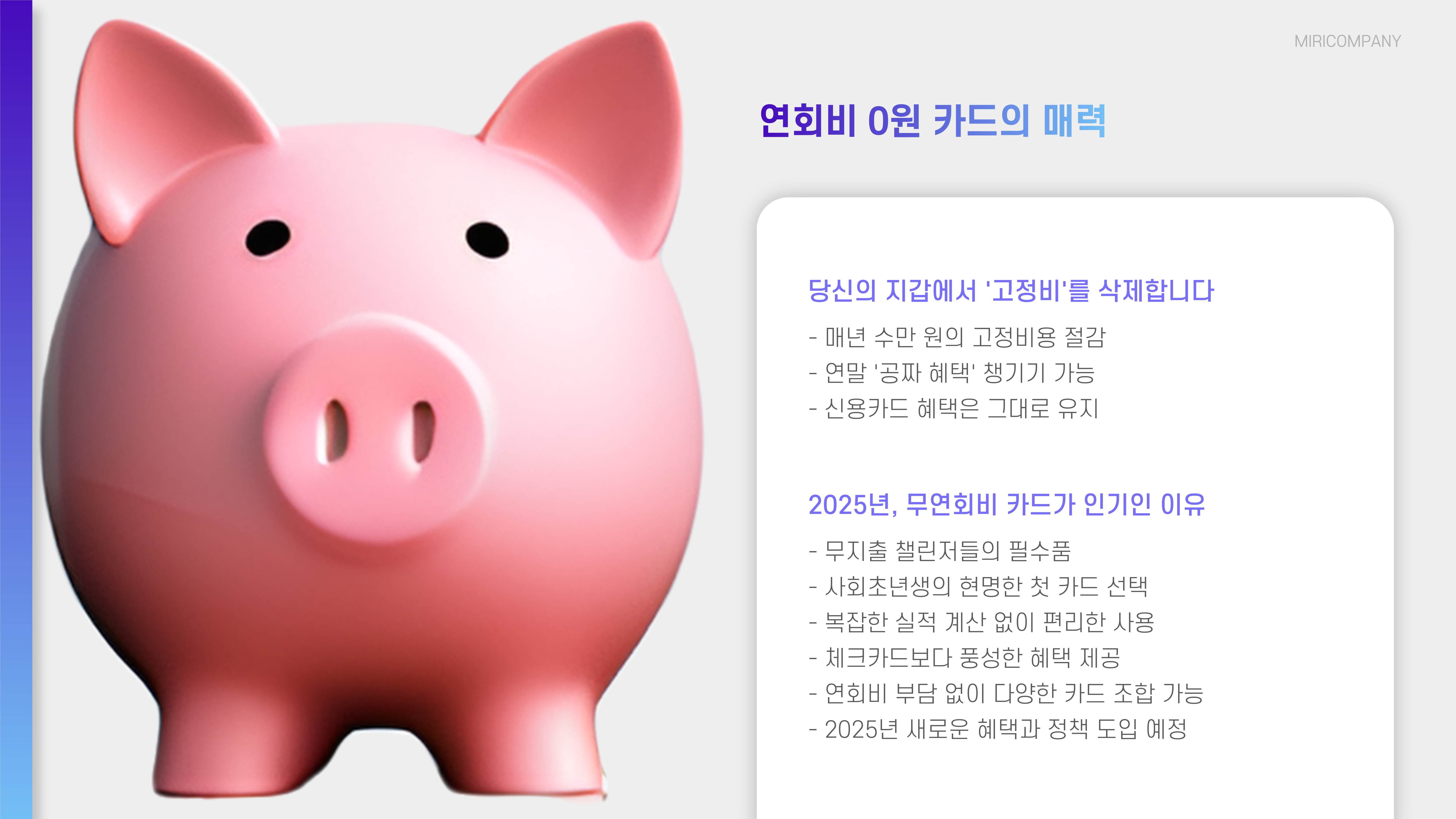 2025년에도 연회비 없는(또는 실질 0원) 신용카드는 무지출 챌린저, 첫 월급을 받은 사회초년생, 그리고 복잡한 실적 계산이 부담스러운 분들에게 꾸준히 사랑받고 있습니다. 매년 수만 원씩 내는 연회비가 아깝지만 체크카드 혜택이 부족해 아쉬웠다면 이 글이 정답입니다.