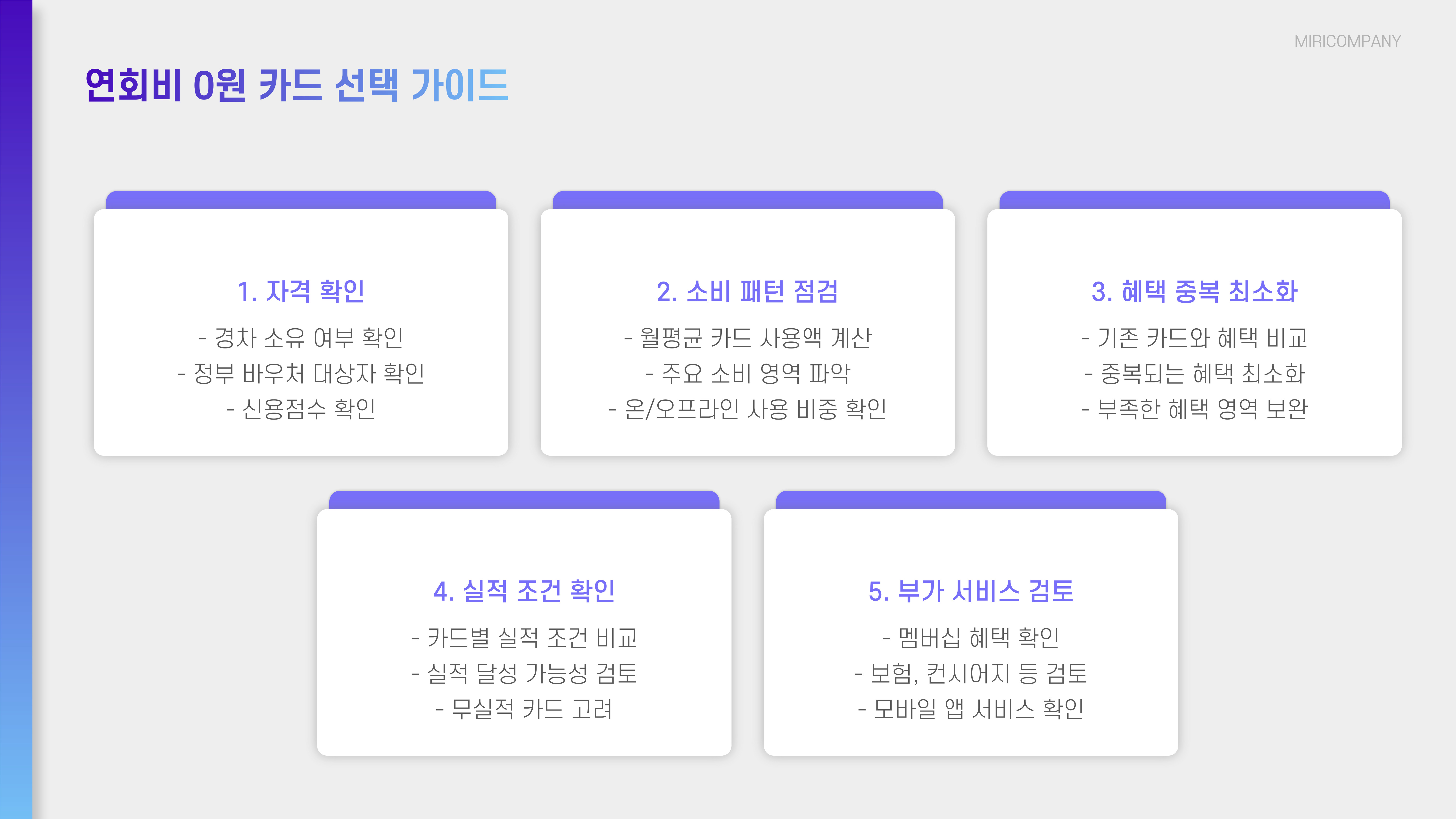 - 혜택 중복 최소화 – 기존 카드와 혜택 영역이 겹치지 않는 조합 선택