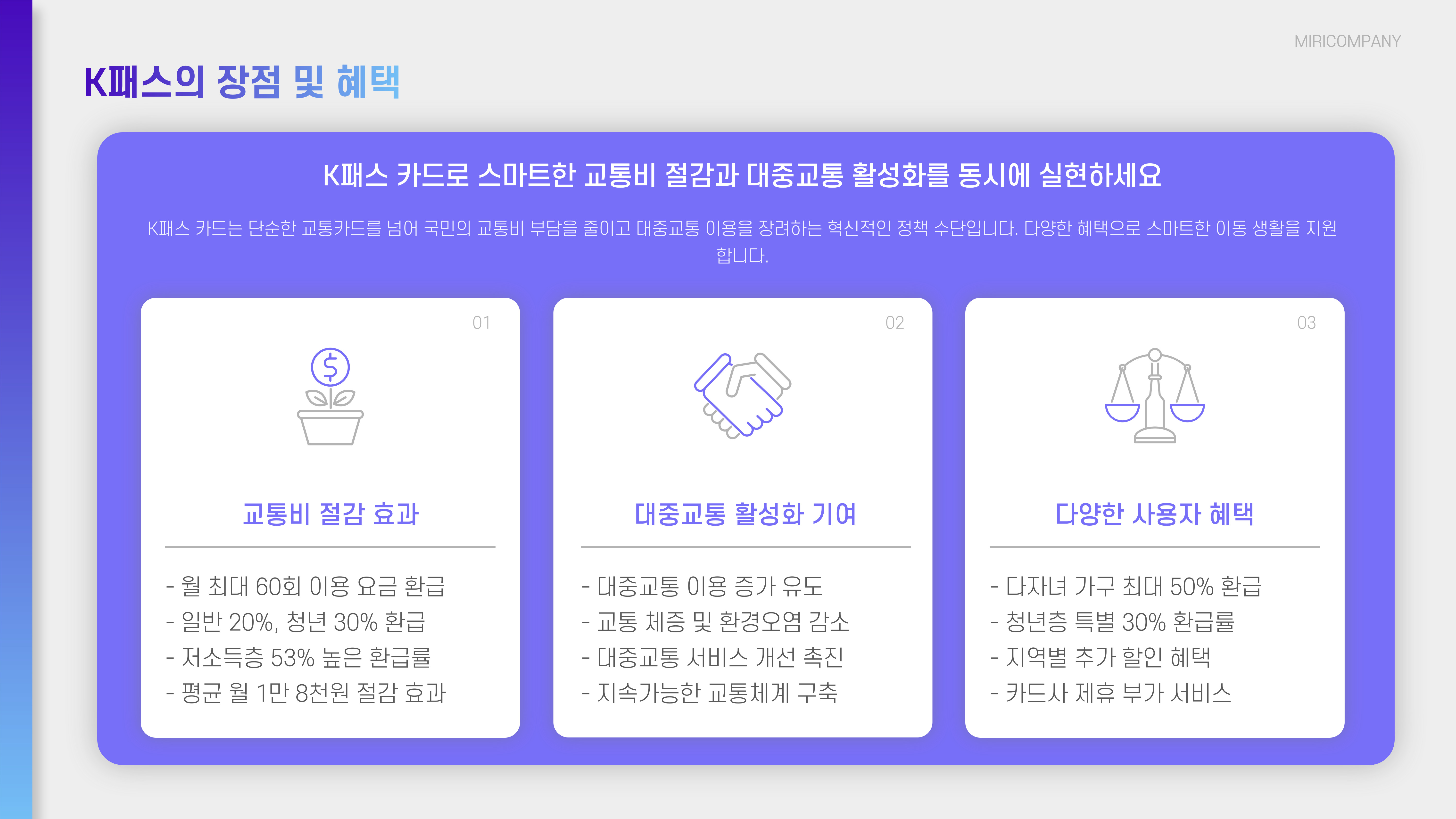 - 대중교통 이용 & 자동 환급 – 월별 이용 횟수 집계 → 다음 달 15일 K패스 앱 캐시 또는 카드 청구할인 형태로 환급
