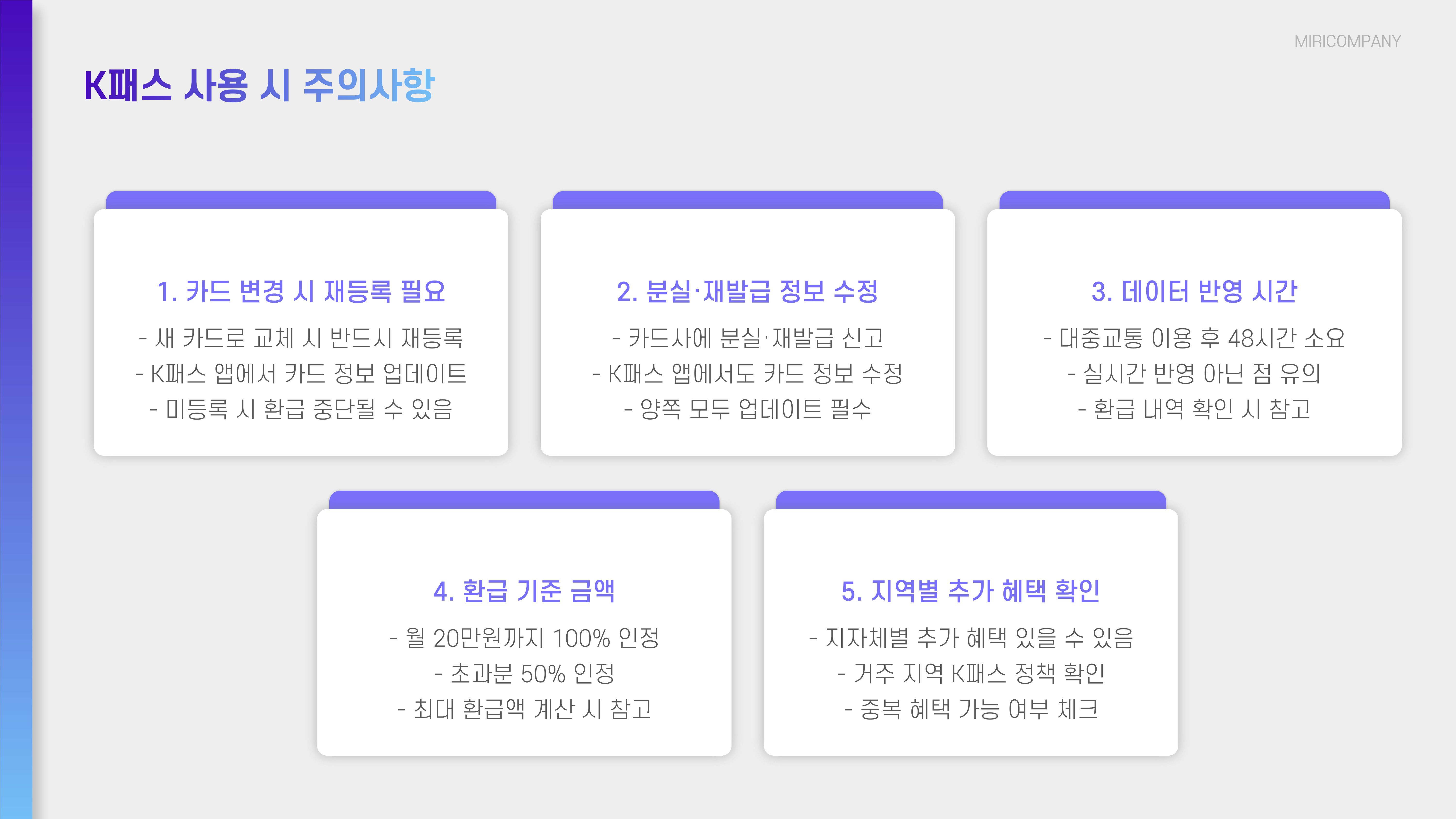 - 분실·재발급 시 카드사·K패스 앱 모두에서 카드 정보 수정 필요.